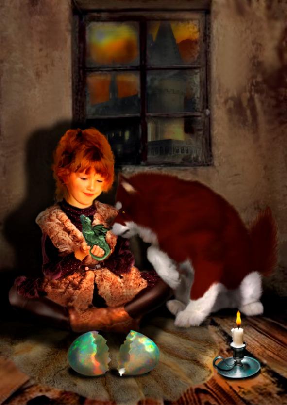 Проголодавшаяся Дейли с радостным сопением начала лакать принесенную похлебку. Шанталь, этим временем, погладила яйцо и ей показалось, что оно шевельнулось. Девочка быстро зажгла свечи и прижала к поверхности яйца обе ладошки.