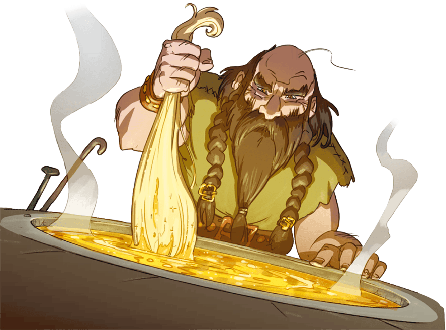 У гномов маленький рост, и они очень упрямые. Многие из них искусные мастера, они любят работать с золотом и драгоценными камнями.