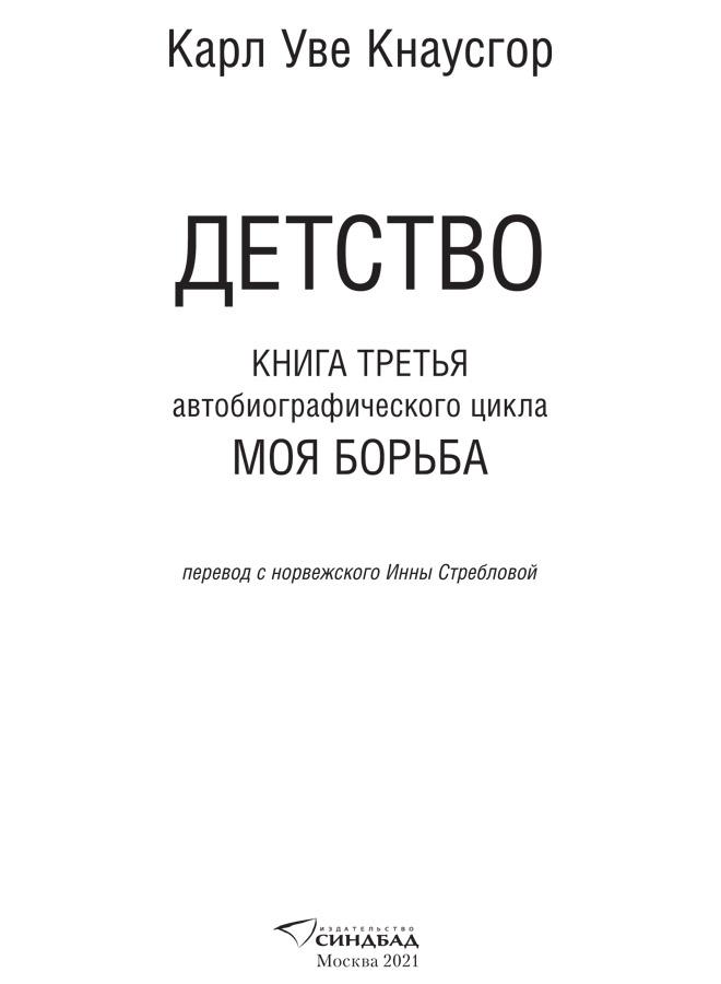 Моя борьба. Книга третья. Детство / Карл Уве Кнаусгор ; [пер. с норв. И. Стребловой]. — М.: Синдбад, 2021.