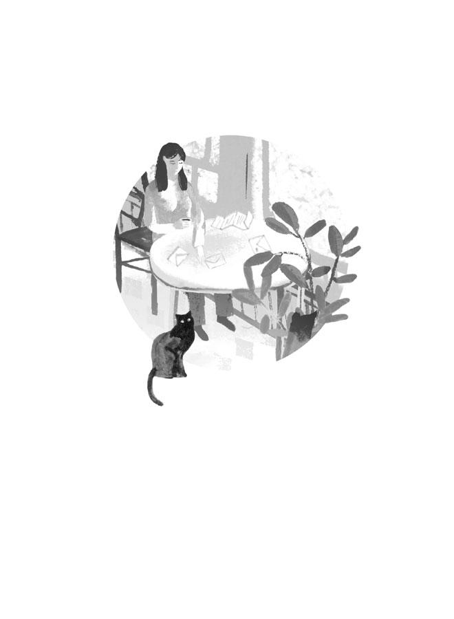 Поэтому, когда я наблюдаю за тем, как она сообщает кому-то в другой стране обо всем, что с ней происходит, а потом получает письмо оттуда, кажется, что все это разворачивается словно в параллельной вселенной. Тонкая, словно калька, почтовая бумага и трехцветные конверты. В наш век технологий немного странно видеть человека, пишущего от руки длинные письма, поэтому госпожа Какао, которая с такой любовью пользуется ретроприспособлениями, кажется не от мира сего. Как-то, проходя мимо нее, я мельком увидел, как красиво она выводит перьевой ручкой прописные буквы. Что за волшебное заклинание скрывается за ними?