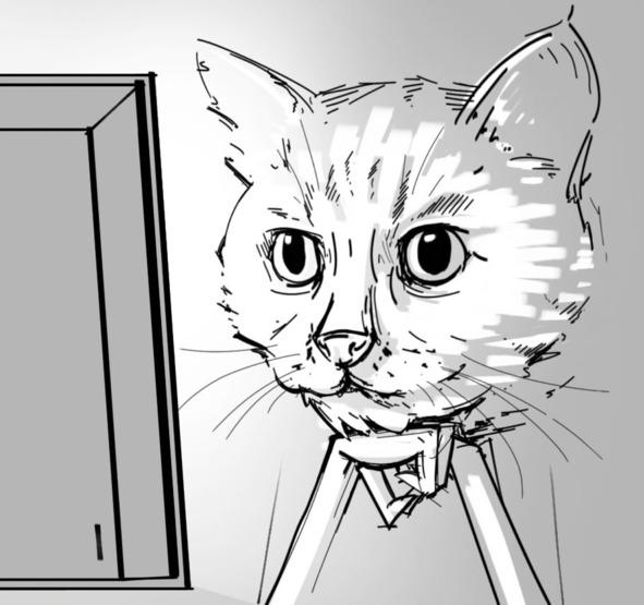 В общем, я закончил девятый класс, когда год назад начал писать. Тогда же нашёл для себя нескольких современных писателей-фантастов, чьё творчество запало в душу и пока что остаётся там. У меня было много свободного времени, и я писал что-то похожее на то, что любил читать. Но с началом нового учебного года я об этом мог только мечтать — свободное время кончилось, а все незаконченные работы были отложены мной в долгий ящик. И сейчас я пишу только на каникулах, поэтому, если бы у меня было портфолио, оно состояло бы из одного крошечного рассказа… Про «Василия Кузьмича», кота, устраивающего на работу своего хозяина (см. иллюстрацию)…