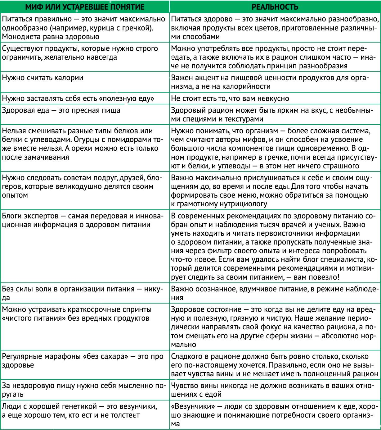 Нельзя недооценивать ни один из принципов здорового питания. Давайте рассмотрим, что в реальности противостоит мифам о здоровом питании.