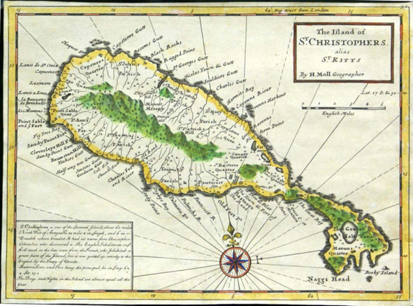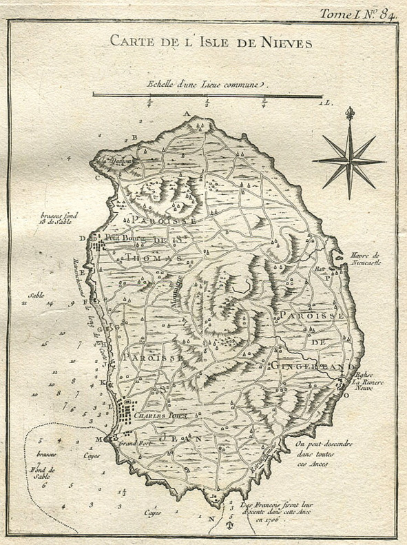 Отделенный от Сент-Кристофера двухмильным проливом Нароуз, Невис в ясные дни с высоты птичьего полета напоминает плавающий в воде лимон изумрудного цвета. Колонизованный англичанами в 1628 году, он долгое время служил прибежищем контрабандистам, мелким плантаторам, охотникам-буканьерам и флибустьерам. Старый административный центр острова — Джеймстаун — стал жертвой землетрясения и цунами в 1680 году, поэтому «Блессед Уильям» бросил якорь на рейде Чарлзтауна — укрепленного поселения, основанного в 1660 году.