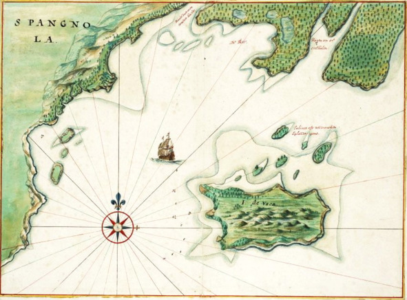Упомянутый корабль флибустьеров был 14-пушечным фрегатом «Санта-Роса», принадлежавшим когда-то испанцам. Он был захвачен Лаурентом де Граффом в 1687 году вблизи Картахены[6] и приведен в порт Пти-Гоав на Гаити в начале октября того же года. После этого де Граффу было предложено перейти на французскую службу — правда, при условии, что он заставит своих сообщников отказаться от пиратских походов против испанцев. Де Графф принял это предложение, но в конце декабря шпионы донесли сьёру де Кюсси, что 250 «строптивцев» на двух судах решили вернуться к прежнему ремеслу. Как уже сообщалось выше, губернатор прибыл на остров Ваш, где лично убедился в достоверности полученной информации.