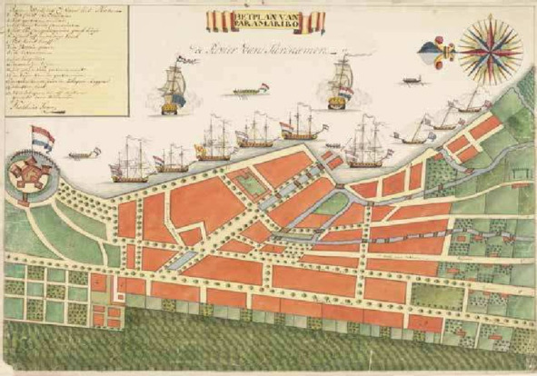 После пополнения запасов провизии пираты и королевские моряки покинули острова Зеленого Мыса и, подгоняемые северо-восточным пассатом, отправились через Атлантику к берегам Южной Америки. 14 апреля они пришли в Кайенну (Французская Гвиана). Дюкасс задержался там до 2 мая, а затем пошел к Суринаму. В то время в административном центре этой голландской колонии — городке Парамарибо — и на сотне окрестных плантациий проживало около 1200 белых поселенцев и 6 тысяч рабов. Главным продуктом экспорта был сахар; в Европу вывозили также мелассу и ром, который англичане за его крепость называли kill-devil — «убей дьявола».