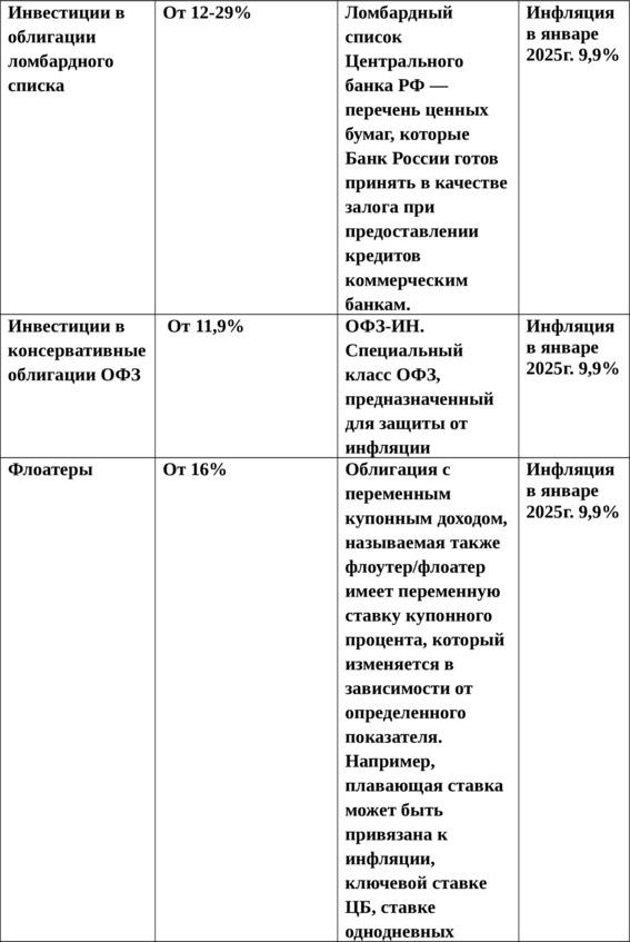 Статья 1.15 Список инструментов, опережающих инфляцию