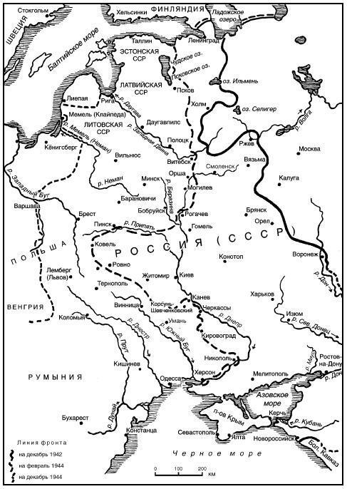 Германские дивизии, накануне катастрофических событий 1944 года стоявшие в глубине России в Крыму, в низовьях Днепра и под Ленинградом, к концу этого периода оказались отброшенными под Будапешт, к Висле и Восточной Пруссии. Из четырех германских групп армий две были практически выбиты, из 11 армий уничтожены шесть, а оставшиеся пять измотаны в боях. В течение этого года на Восточном фронте только в ходе шести описанных ниже битв (этот снимок немецких поражений 1944 года далеко не полный. – Ред.) было потеряно более 600 тысяч германских солдат погибшими, пропавшими без вести и плененными. (Автор преуменьшает немецкие потери. Только в ходе Белорусской операции 23 июня – 29 августа 1944 года безвозвратные потери немцев составили свыше 500 тысяч человек (381 тысяча убитыми и 158 тысяч пленными), в Ясско-Кишиневской операции 20–29 августа около 400 тысяч, в том числе 208,6 тысячи пленных, и т. д. См. примечания по тексту. – Ред.)