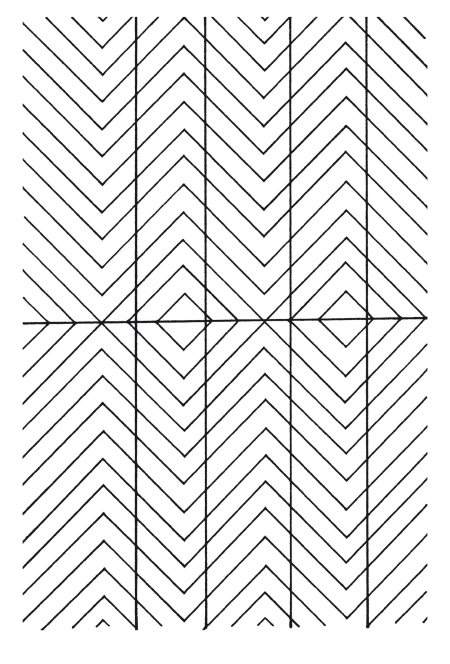 Кажется, что две продольные линии отстоят друг от друга в центре дальше, чем на концах. Между тем, они строго параллельны.
