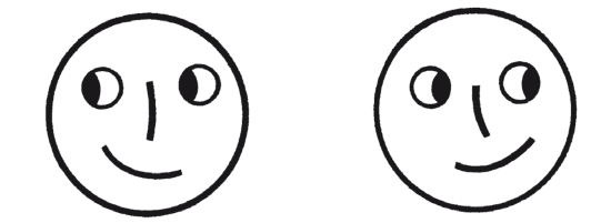Пока вы смотрите на эти две физиономии, держа книгу неподвижно, они не обнаруживают ничего необычайного. Но начните двигать книгу вправо и влево, не переставая смотреть на рисунки. Произойдет любопытная вещь: физиономии словно оживут – начнут двигать зрачками вправо и влево, поворачивая также при этом рот и нос.