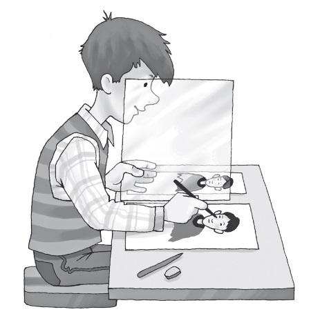 Достаньте оконное стекло приблизительно 20 сантиметров ширины и 30 сантиметров длины. Положите рисунок перед собою на стол, а сбоку положите белый лист бумаги. Поставьте вертикально между рисунком и бумагой ваше стекло, которое будет как бы перегородкой. Возьмите в правую руку карандаш, удерживая стекло левой рукою. Держите голову над рисунком и смотрите на белый лист через стекло. Вы увидите на бумаге точное изображение рисунка, и останется только обвести все линии карандашом, удерживая все время левой рукою стекло перпендикулярно к столу. Рисунок можно скопировать очень точно в несколько минут.