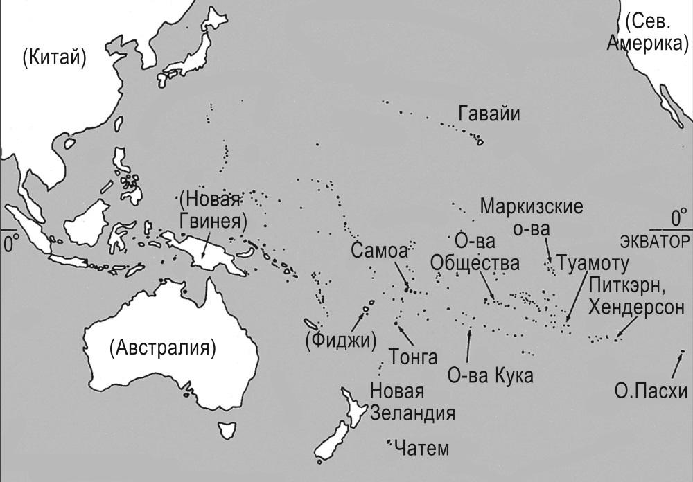 Рис. 2.1. Острова Полинезии (в скобках указаны территории, не относящиеся к Полинезии)