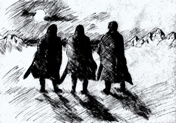 И по этим словам все одновременно двинулись к выходу. Тэлеск надел на плечи собранную ещё с вечера котомку, Ноккагар взял свою кожаную суму, и они вышли из дома. Родители Тэлеска тоже покинули дом, чтобы проводить путников.