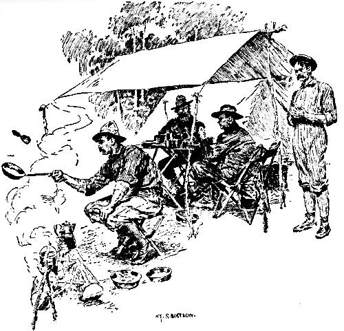 Immediately we, that is to say, Eddie, began to buy things. It is Eddie's way to read text-books and to consult catalogues with a view of making a variety of purchases. He has had a great deal of experience in the matter of camp life, but being a modest man he has a fund of respect for the experience of others. Any one who has had enough ability, or time, to write a book on the subject, and enough perseverance, or money, to get it published, can preach the gospel of the woods to Eddie in the matter of camp appointments; and even the manufacturers' catalogues are considered sound reading. As a result, he has accumulated an amazing collection of articles, adapted to every time and season, to every change of wind and temperature, to every spot where the tent gleams white in the campfire's blaze, from Greenland's icy mountains to India's coral strand. Far be it from me to deride or deprecate this tendency, even though it were a ruling passion. There are days, and nights, too, recalled now with only a heart full of gratitude because of Eddie's almost inexhaustible storehouse of comforts for soul and flesh—the direct result of those text-books and those catalogues, and of the wild, sweet joy he always found in making lists and laying in supplies. Not having a turn that way, myself, he had but small respect for my ideas of woodcraft and laid down the law of the forest to me with a firm hand. When I hinted that I should need a new lancewood rod, he promptly annulled the thought. When I suggested that I might aspire as far as a rather good split bamboo, of a light but serviceable kind, he dispelled the ambition forthwith.