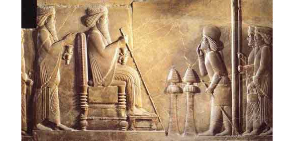 Барельеф из Персеполиса с изображением Царя Дария Великого и Сына Человеческого. VI в. до н.э.