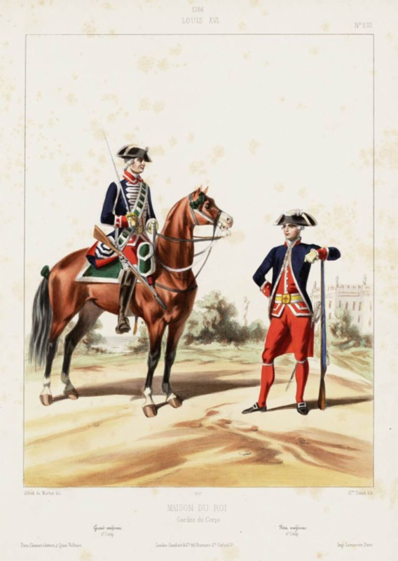 Людовик XVI предложил дополнить гвардию отрядом всадников, куда и попали «по протекции» несколько офицеров, в том числе и наш герой в 1783 году. Основной задачей вновь набранных гвардейцев было сопровождать Короля на охоте и прочих прогулках верхом, выполняя функцию телохранителей. Все гвардейцы должны были пройти особую «генеалогическую комиссию» у придворного генеалога на знатность и древность рода, которую без труда прошел де Пюизе, показать отличное владение шпагой вольтижировку и хорошее образование.