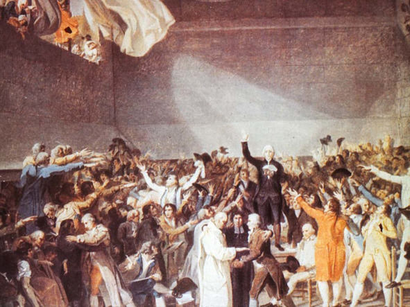 Утром 20 июня, найдя зал «Малых забав» запертым, а это был воскресный день, т.е. выходной, и время церковной службы, которую должен был посещать каждый уважающий себя католик, депутаты собрались в зале для игры в мяч и дали клятву не расходиться до тех пор, пока не выработают конституцию.