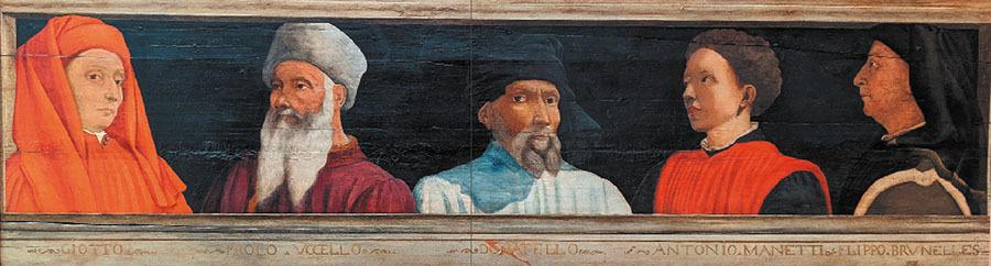Неизвестный художник. Фрагмент фрески «Пять мастеров флорентийского Возрождения: Джотто, Уччелло, Донателло, Манетти, Брунеллески. Первая половина XVI в. Лувр, Париж