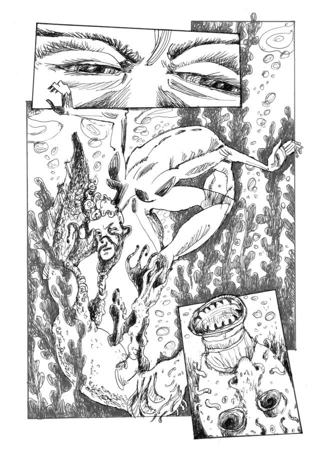 Димка греб со всей мочи, тряс ногой, стараясь освободиться, но его тащили в гущу водорослей. Те неприятно скользили по коже, от отвращения Димку передернуло. Он перестал вырываться и нырнул, чтобы разобраться с неведомой опасностью. Сквозь толщу воды, будто через бутылочное стекло, он наконец смог разглядеть атланта: вытянутое лицо с холодными рыбьими глазами, тонкие гибкие пальцы с перепонками, серое тело, покрытое чешуей. Приснится такой урод, и не проснешься — схлопочешь инфаркт миокарда. На толстой шее атланта Димка обнаружил продольные щели — жабры — и, не раздумывая, схватился за них.