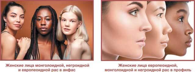 Форма лиц европеоидной, монголоидной и негроидной рас