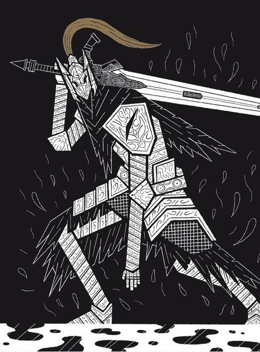 Рыцари появлялись из ниоткуда как темные привидения в латах в форме скелетов – неудивительно, что их прозвали Темными Духами. В интервью в «Dark Souls: Иллюстрации» Миядзаки отмечает, что шипованная броня Кирка была вдохновлена испытанием 77 колец из JoJo’s Bizarre Adventure. Проходящие это испытание носили на себе кольца, отнятые в поединках у 77 противников. Разработчики решили добавить к этому еще и шипы – так появился дизайн Кирка. Это небольшое отклонение от оригинальной концепции, как признает сам Миядзаки, все же допускает возможность, что ношение брони с шипами тоже представляло собой испытание для рыцарей Нового Лондо. Но если это так, это лишь показывает, сколько безжалостности и варварства Кирку нужно было проявить, чтобы заслужить свое снаряжение; в любом случае его оружие[20] и доспехи воплощают угрозу, которую представляют собой Темные Духи. Жестокие, беспощадные убийства, которые эти воины совершали по всему миру, принесли им недобрую славу – их боялись.