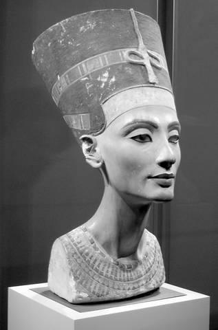 Нефертити – любимая супруга фараона Эхнатона, правившего примерно с 1351 по 1334 год до н. э. и принадлежащего к Восемнадцатой династии древнеегипетских правителей. По преданию, красавица родилась около 1370 и скончалась в 1330 году до н. э. То есть прожила 40 лет. Полное ее имя, естественно составленное по канонам того времени: Нефер-Неферу-Атон Нефертити, то есть «Прекраснейшая из красавиц Атона, Прекрасная пришла».