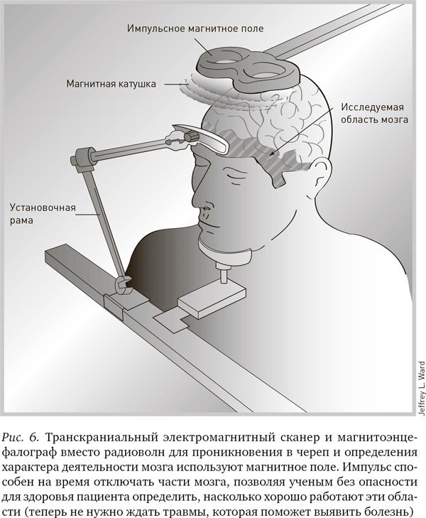 Ни один из инструментов нейробиологии не позволял исследовать мозг систематически. Невозможно было заказать жертву несчастного случая с повреждениями в конкретной области мозга, которую вам хотелось исследовать. Мозг — живая динамичная система, и посмертное вскрытие часто не позволяет узнать самое интересное — как различные области мозга взаимодействуют между собой, не говоря уж о том, как в них рождаются мысли и такие чувства, как любовь, ненависть, ревность и любопытство.
