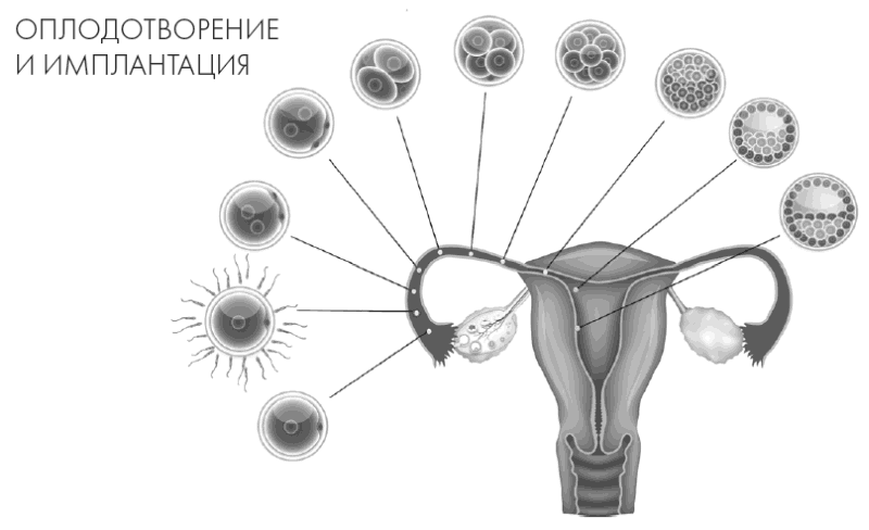 Эндометрий созревает как раз к 7–8-му дню после овуляции – за это время прогестерон успевает его подготовить. Происходит мягкое «приземление» и закрепление ребеночка в поверхностном слое. С этого момента маленький человечек может кушать, мама все для него подготовила: и кров, и стол (см. рис.).