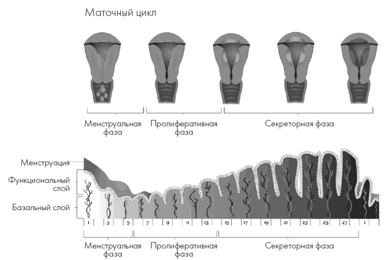 А если жених и невеста не встретятся? Яйцеклетка в одиночестве быстро угасает, ведь ее век без живительной силы сперматозоида недолог. Тот же исход ожидает и желтое тело. Вместо трех месяцев оно будет работать лишь две недели, а затем начнет процесс самораспада. Одновременно сократится выработка прогестерона. Без его поддержки наросший слой эндометрия в матке начнет отслаиваться и выходить наружу – это и есть менструация, фаза очищения. Первый день менструации также начинает новый цикл.