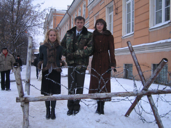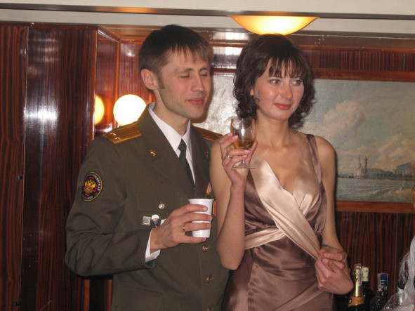 Когда ехали на крейсер «Аврора» попали в автомобильную пробку и часть пути прошли, вернее, пробежали в туфлях по заснеженной набережной. Это была не единственная пробежка в тот день. Во-первых, я утро начала с пробежки, чем шокировала своего парикмахера — она шла к невесте делать свадебную прическу и макияж, когда встретила ее (меня) в спортивной амуниции совершенно растрепанной. Потом, после свадебных тостов, мы торопились на поезд, который должен был нас умчать в теплый Крым, и застряли в пробке. Решили, что в этой ситуации будет быстрее, если мы поедем в метро, но до метро нужно добежать… между машинами… по центру города… очень быстро… Мы были в восторге от такого поворота событий! Слава в парадной военной форме, я с цветами, Денис и Ира бежим по украшенному к Новому году Невскому проспекту. У меня было впечатление нереальности происходящего, как будто мы снимались в остросюжетном фильме. Слава и Денис поехали домой за нашими вещами, а мы с Ирой отправились волноваться за них на вокзал. К счастью, успели, хотя были все шансы опоздать.