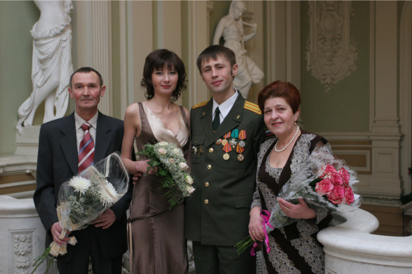 Собственно, сама подготовка к свадьбе доставляла удовольствие: выбор обручальных колец, платья, букета, создание дизайна пригласительных открыток и т. д. Конечно, во многом помогли нам родители. И не только непосредственно в подготовке к этому торжественному дню, но и… я просто рада, что у меня всегда есть возможность позвонить домой и поделиться своими событиями, чувствами, найти понимание и поддержку. Для меня очень много значит то, что папа с мамой приехали к нам.