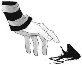 — Я боялась, ты вот-вот наступишь и раздавишь... кое-что... — пробормотала Икс. Тогда по мосту у них под ногами проползало целое семейство Кляксов.
