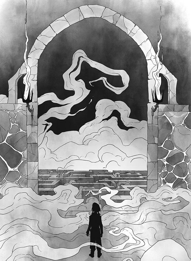 Это была окраина Лабиринта, его рваные края, в которые проникали людские сны. Вдали виднелась громадная арка в каменной стене, ведущая вглубь Лабиринта. Она походила на темную пасть, готовую сожрать тебя целиком.