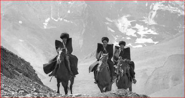 За воротами дома стояли три всадника на породистых лошадях в длинных серых подпоясанных бешметах, на боку висели кинжалы, оправленные в серебро.