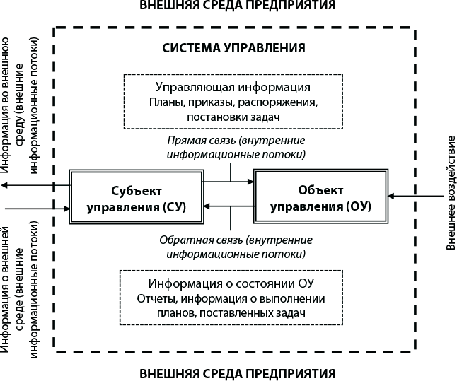Система управления взаимодействует с внешней средой посредством внешних информационных потоков, позволяющих субъекту управления ориентироваться в ситуациях за пределами предприятия, а также передавать необходимые сведения системам управления более высокого и более