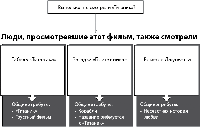 На рис. 1.7 показан пример системы, которая рекомендует пользователю фильмы, основываясь на том, какой фильм он только что просмотрел, — пользователю не нужно ничего искать.