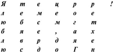 Он начал диктовать. Я прилагал все свои старания, чтобы не ошибиться. Он называл одну букву за другой, и, таким образом, последовательно составлялась таблица непостижимых слов: