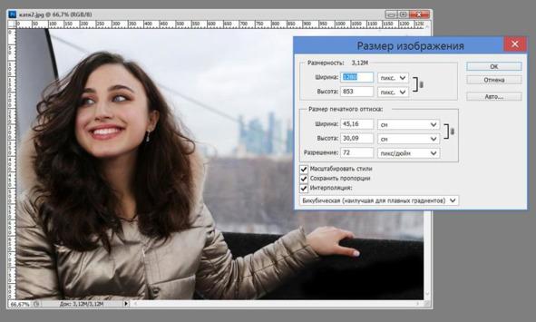 Из главного меню программы выбираем команду «Изображение/Размер изображения». На экране появится окно с параметрами, из которого видно, что это фото можно размещать только в своих социальных сетях.