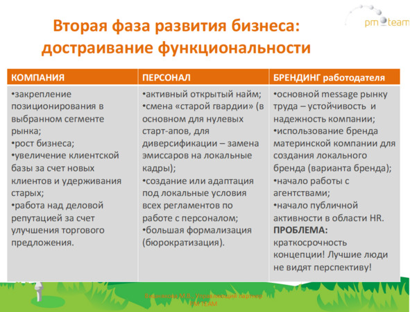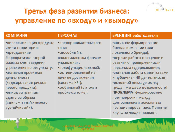 Самостоятельность бизнес юнитам на третье фазе нужна, в первую очередь, для того, чтобы создать несколько точек роста бизнеса, вместо одной, централизованной, как это было на второй фазе.