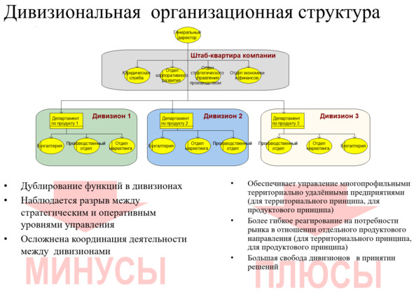 Если же руководитель дивизиона должен согласовывать не только политики (общие правила и принципы), но и каждое свое операционное движение с центральным аппаратом, то это — вариант территориально или продуктово распределенной линейно-функциональной структуры, со всеми ее особенностями, включая неповоротливость.