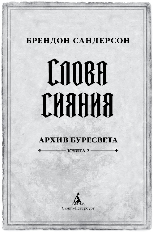 Архив Буресвета. Книга 2 : Слова сияния : роман / Брендон Сандерсон ; пер. с англ. Н. Осояну. — СПб. : Азбука, Азбука-Аттикус, 2017. (Звезды новой фэнтези).