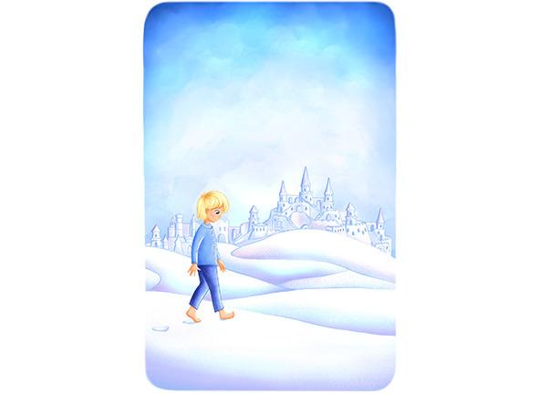 Необычайная радость охватила Петю! Засучив рукава пижамы, он с удивлением понял, что ему совсем не холодно. Паренёк шагал босыми ногами по прозрачной дорожке, не ведая, куда она его приведёт.