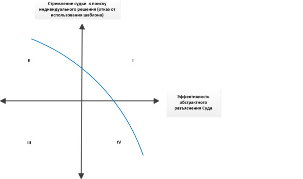 Из проведенных интервью следует, что, по мнению сотрудников ВАС вовлеченных в процедуру выработки абстрактных разъяснений, у них нет четкого понимания, насколько эффективно работает этот инструмент управления правосудием. Были высказаны разные мнения. Кто-то придерживался представлений о безусловном действии всех абстрактных разъяснений, даже в том случае если они явно неудачные. Проблема же виделась не в том, что разъяснение не воспринимается на местах, а в том, что оно воспринимается безусловно: