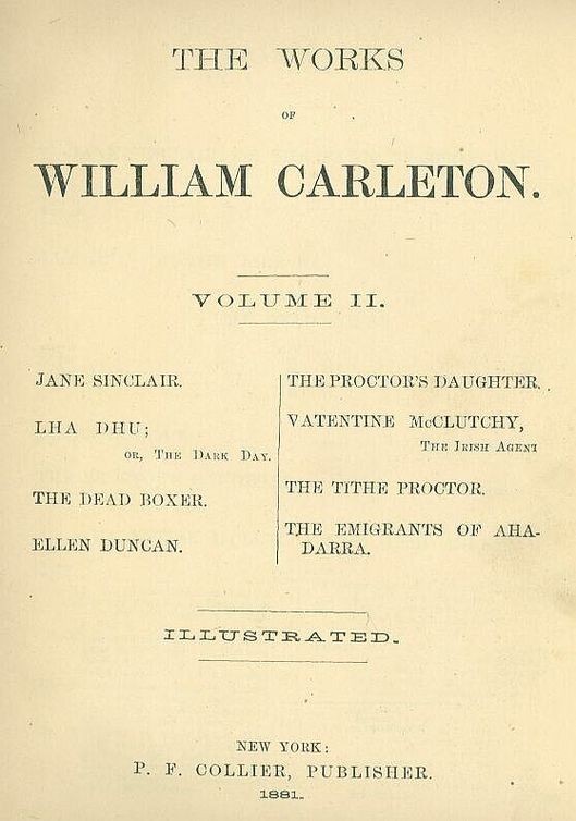 The village of Ballydhas was situated in the bosom of as sweet a valley as ever gladdened the eye and the heart of a man to look upon. Contentment, peace, and prosperity, walked step by step with its happy inhabitants. The people were marked by a pastoral simplicity of manners, such as is still to be found in some of the remote and secluded hamlets of Ireland. The vale was green and shelving, having its cornfields, its pasturage, and its patches of fir, poplar, and mountain-ash intermingled, and creeping up on each side in wild but quiet beauty to the very mountain tops that enclosed it. At the head of the glen reposed a small clear sheet of water, as calm and unruffled as the village itself. By this sweet lake was fed the pure stream which murmured down between the banks, here and there opened, and occasionally covered by hazel, black-thorn, or birches. As it approached the village the scenery about it became more soft and tranquil. The banks spread away into meadows flower-spangled and green; the fields became richer; the corn waved to the soft breezes of summer; the noon-day smoke of the dinner fires rose up, and was gently borne away to the more wide-spread scene of grandeur and cultivation that lay in the champaign country below it. On each side of the glen were masses of rock and precipices, just large enough to give sufficient wildness and picturesque beauty to a view which in itself was calm and serene. In the distance about a mile to the north, stood out a bold but storm-vexed headland, that heaved back the mighty swell of the Atlantic, of which a glimpse could be caught from an eminence above the village. Nothing indeed could be finer than the booming fury of the giant billows, as they shivered themselves into spray, and thundered around the gloomy caverns of the headland, especially when contrasted with the calm sense of peace and security which reposed upon the neat white village in the glen.