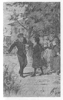 Девочки после этой угрозы сразу присмирели — и вовремя, потому что в эту минуту в зал вошел знакомый уже читателю высокий, худой господин, ведя за руку маленькую девочку, в которой нетрудно было узнать проказницу Тасю.