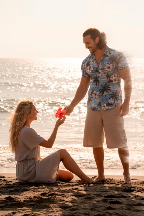 Она подняла глаза. Перед ней стоял мужчина в светлой рубашке, с усталым, но уверенным взглядом. В его глазах мелькнул отблеск моря — или ей показалось. Она хотела ответить, но слова застряли в горле. Всё внутри замерло.