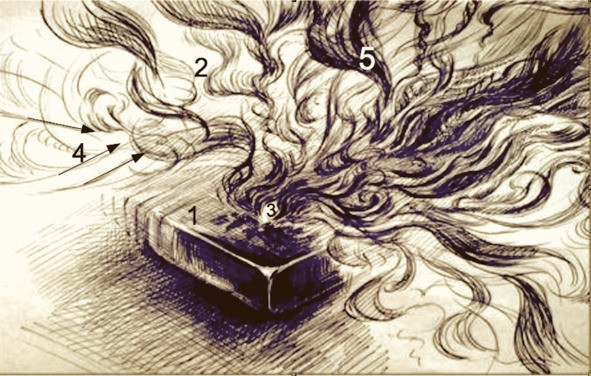 На первом рисунке изображена модель времени, а на втором — рисунок Леонардо да Винчи «Мудрец, изучающий время» (Leonardo da Vinci, Old Man Seated and Swirling Water, 1513, Royal Library, Windsor).