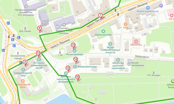 Затем взобраться на Лисью гору и увидеть панораму города, сходить на «Старый Демидовский завод» и побывать в краеведческом музее. После этого пройтись по парку имени писателя Алексея Бондина, посмотреть посвященный ему музей, прокатиться на катере по местному пруду, увидеть «Тагильский Петергоф», прогуляться по любимой горожанами набережной до светомузыкального фонтана и пообедать в ресторанчике.