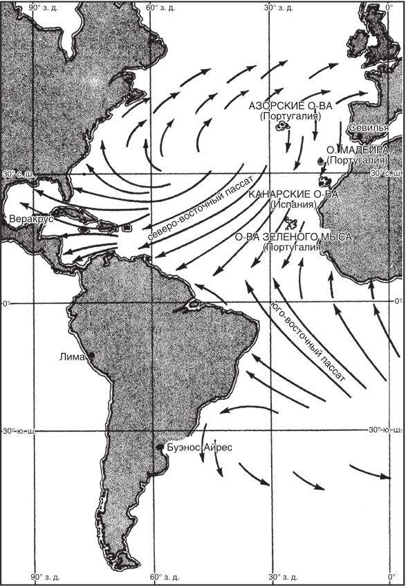 От о. Гомера (Канарские о-ва) до о. Сан-Сальвадор (Багамские о-ва).