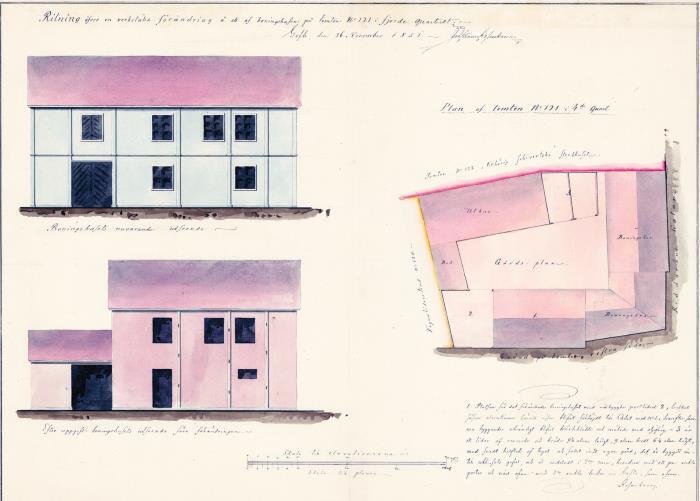 Двор 121 в 4-м квартале, где вырос Иммануил, до его перестройки в 1851 году (нижнее здание)