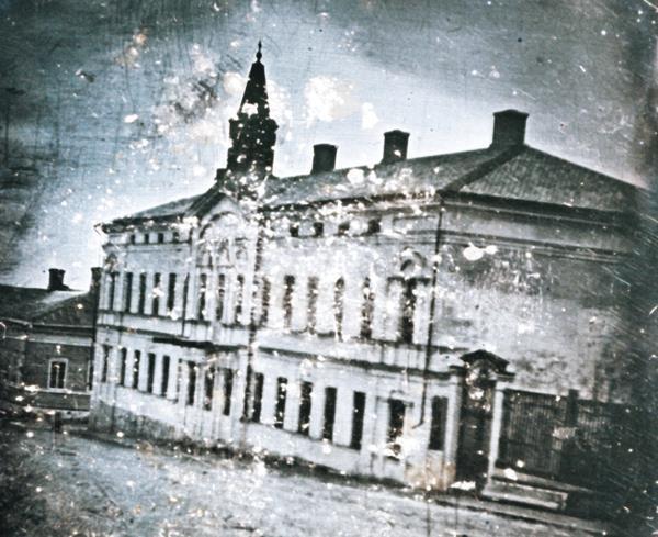 Дом Шарлинов в Або, фотография (дагеротип) Хенрика Каяндера, 1842 год. На заднем фоне видна башня собора